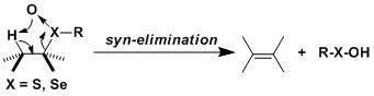對于擁有β-H的亞砜或者氧化硒底物進行加熱的話,會引起syn-β消除反應,最終形成烯烴產物。