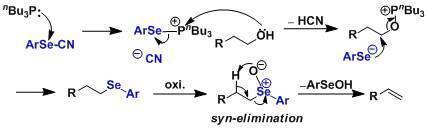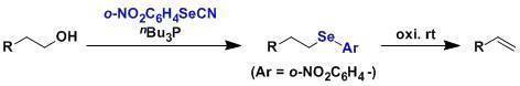 醇類底物先形成氧化硒中間體,再消除形成烯烴的西沢?Grieco法,可以在極其溫和的條件下進行,所以該方法可以用來合成更復雜的所需化合物。但是值得注意的是,在該方法中,必須使用過量的硒化合物。