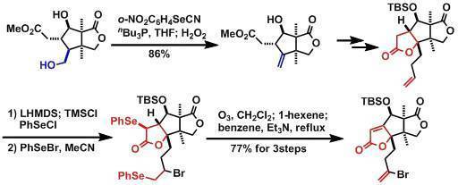 α-羰基化合物可以由烯醇跟PhSeBr等反應獲得。這是合成α,β-不飽和羰基化合物的一般方法。[1]
