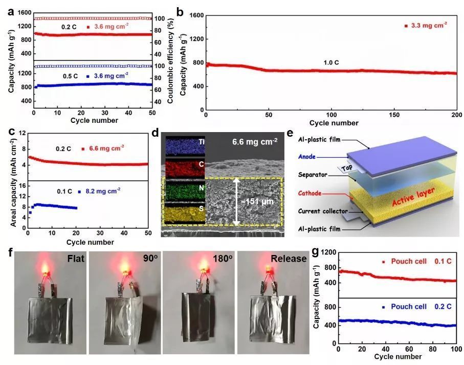 在高負載(3.3~8.2 mg·cm-2)和柔性應用場景下,P-NTC對電池的電化學反應過程和電化學性能具有良好的促進作用(圖6)。其中,硫負載量為8.2 mg·cm-2時,S/P-NTC在0.1 C倍率下活化后的面容量為9.0 mAh·cm-2,20圈后容量依舊可保持為7.7 mAh·cm-2。封裝的2.5 cm × 2.5 cm軟包電池能在不同的彎折角度下為LED燈進行穩定供電,在0.1 和0.2 C的倍率下,循環100圈容量保持率依次為65.3%和79.1%。▲ 圖6 S/P-NTC在高負載(3.3~8.2 mg·cm-2)和柔性場景下的電化學性能本文采用模板法對P-NTC的結構進行了合理設計,賦予其如下功能:P-NTC不僅呈現出多對多硫化鋰良好的管理功能,有效減輕多硫化鋰的穿梭效應,而且還能作為多功能的電催化劑催化Li2S的成核和分解反應,從而有效優化了電池的電化學反應過程和性能。研究工作證實了模板限域合成方法在構建電催化材料中的重要性,探討了電催化材料在鋰硫電池體系電化學反應過程中的關鍵作用,為今后高活性電催化劑的設計提供了新視角,為深入探討電催化劑對鋰硫化學的作用機制提供了研究思路。本人于2019年6月博士畢業于蘇州大學新能源科學與工程專業,7月正式加入西南科技大學環境友好能源材料國家重點實驗室并組建研究團隊。起初,我遇到了諸多現實困難:一方面,需要適應新環境的科研平臺;另一方面,需要適應從學生到獨立科研工作者的角色轉換。通過與導師的持續交流,逐漸明確了研究方向,為后期研究團隊的發展奠定了良好基礎。在此,特別感謝導師孫靖宇教授和劉忠范院士給予本工作的支持,感謝清華大學張強教授的指導。同時感謝蘇州大學孫中體博士、樊趙地同學,清華大學蔡文龍博士的合作。