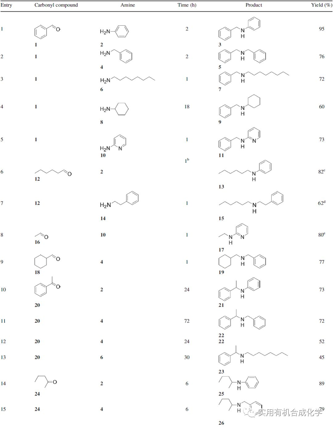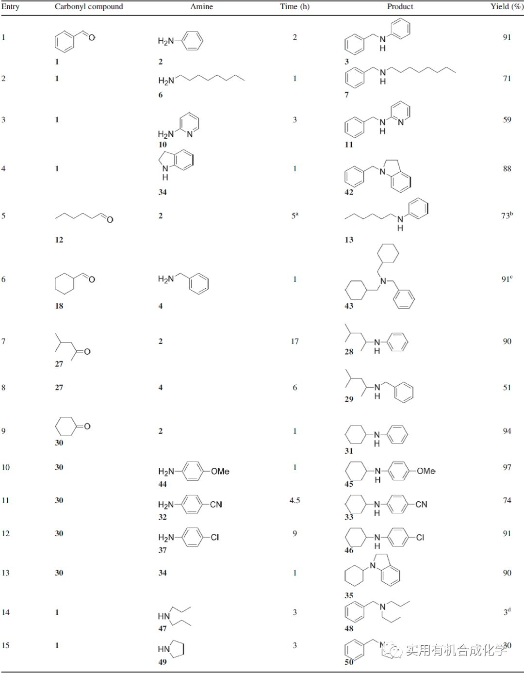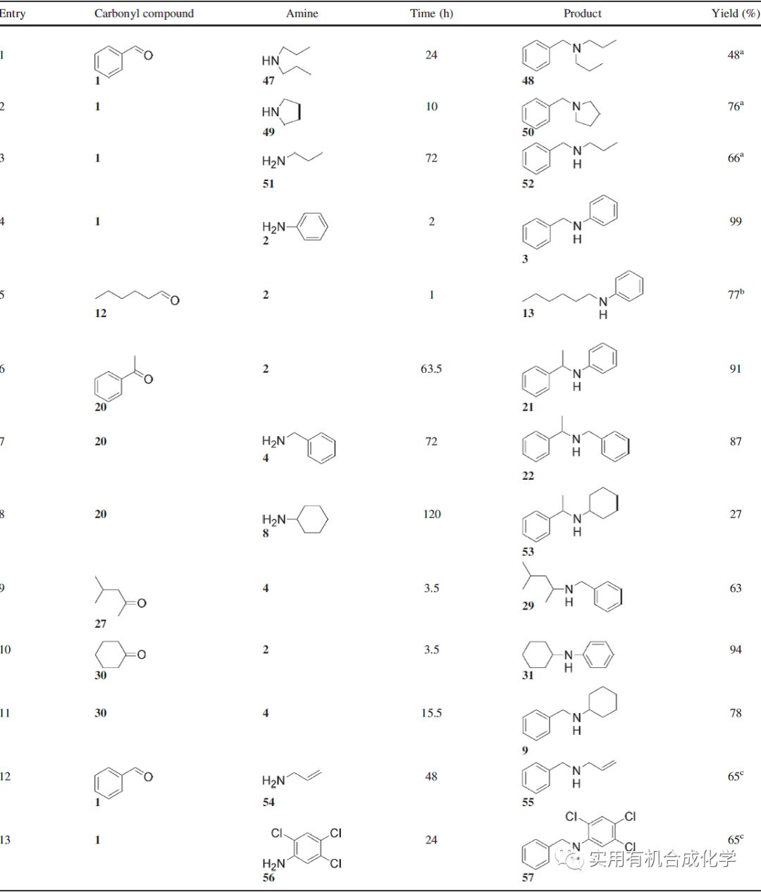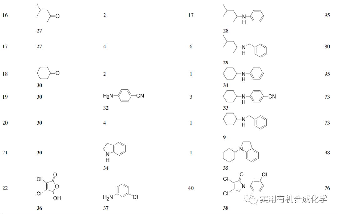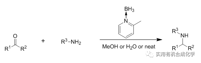 醛(酮)一鍋還原胺化是有機化學中的一個重要反應,常用的還原劑有NaBH3CN、NaBH(OAc)3、吡啶硼烷絡合物等。文獻中有報道吡啶硼烷絡合物環境友好,可以避免NaBH3CN在產品或后處理中產生氰化物的風險。但是該試劑受熱不穩定,54oC以上分解放熱導致著火或爆炸,不宜大量使用。2004年,Yasuo Kikugawa等人(Tetrahedron, 2004, 60, 7899 – 7906)報道2-甲基吡啶硼烷(Pic-BH3)可作為還原胺化的還原劑。該試劑價格便宜,是商業可得的穩定晶狀固體(溶點44-45oC),熱穩定性好(分解溫度186oC),可長期保存,溶于甲醇和水,可以在甲醇、水甚至無溶劑條件下進行還原胺化,底物適用性廣,反應收率良好(圖1 - 圖3)。該條件可有效減少有機溶劑的使用,不必擔心體系中水的影響,值得推廣應用。