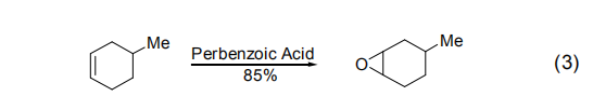 過氧苯甲酸與其它過氧化物相似,在溫和的條件下與烯烴反應得到環氧化合物 (式 3)[2~5]。