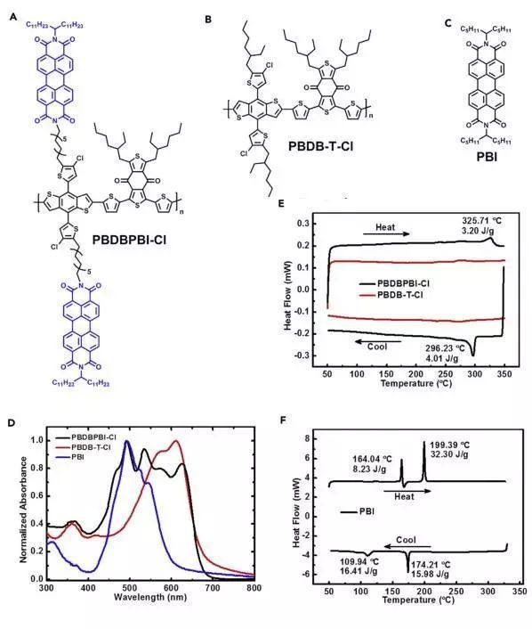 (E) PBDBPBI-Cl和PBDB-T-Cl的差示掃描量熱法分析(DSC);