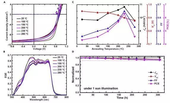 (A) 不同退火溫度下,SCOSCs的J-V曲線;