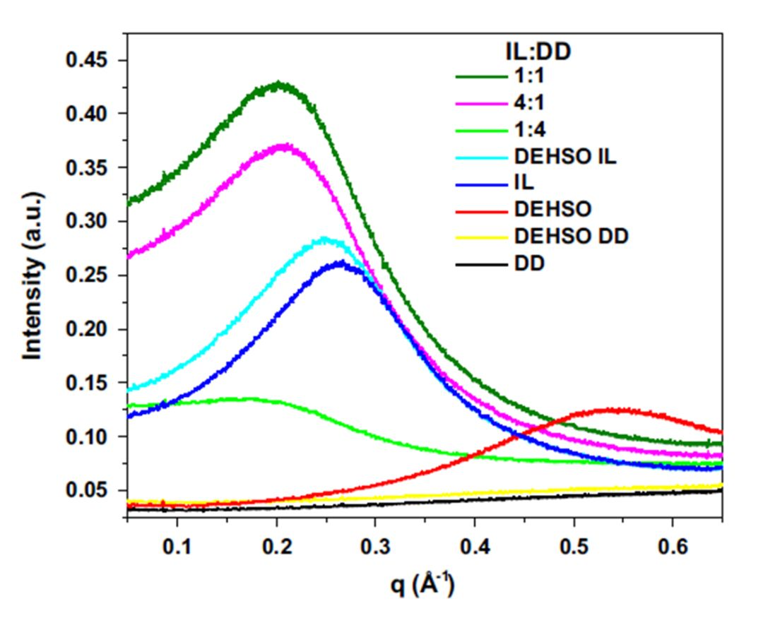 圖4. 不同物質及不同比例的小角X射線散射譜圖