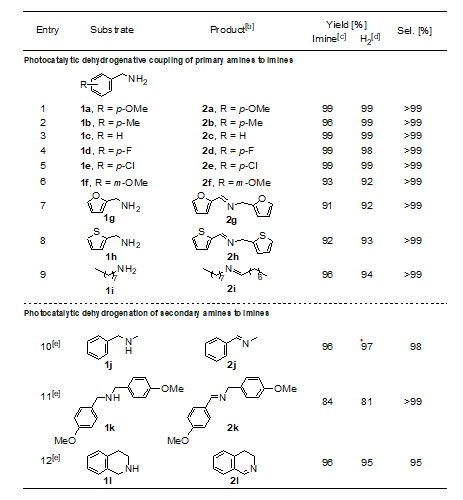 同時,我們可以將卞胺拓展,從而高選擇性合成一系列的亞胺(表1)。▲Table 1. Substrate scope of the selective dehydrogenation of amines to imines over Ni/CdS.[a]