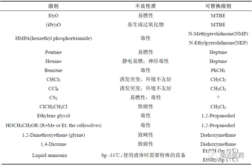 在工藝放大反應中,溶劑的選擇必須遵循安全及易于操作的原則。所以,通常用于實驗室的許多溶劑卻不能用于放大反應。比如,硝基甲烷(火箭燃料)會形成易爆且遇水易燃的鈉鹽;1,4-二氧六環具有致癌性;二氯甲烷的沸點較低,很難完全回收;胺的鹽酸鹽容易溶解在氯代溶劑中,而在其他溶劑中幾乎不溶;二氯甲烷與堿性化合物或堿性水層長期接觸可能會導致某些副反應;避免過夜放置含有親核試劑,如胺的二氯甲烷溶液。