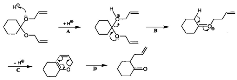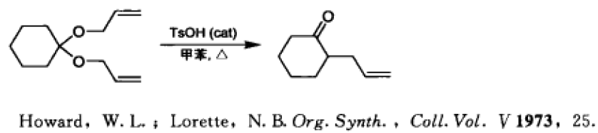 反應(yīng)說(shuō)明:該反應(yīng)是環(huán)己縮酮在酸性條件下形成烯醇醚,然后發(fā)生Claisen重排生成α-烯丙基環(huán)己酮的反應(yīng)