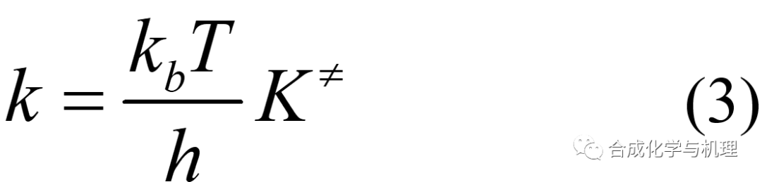 前面得到的過渡態理論的基本方程(1)(為了格式統一將原來的?G≠改為?G≠)中的傳輸系數κ很難通過計算或者測量得到,因此這里需要定義一個假熱力學平衡常數K≠。將方程(2)帶入(1)可得方程式(3)。
