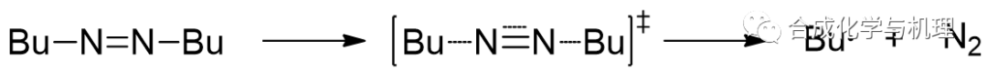 1,1’-偶氮丁烷的氣相熱分解,△S≠= 79.5J·mol-1·K-1 > 0,表明C-N鍵的斷裂是反應的速率控制步驟。