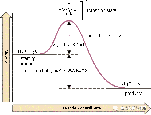 氯仿水解生成甲醇的親核取代反應,△H≠值為100.5 kJ·mol-1,遠小于常見化學鍵的鍵能,所以該反應決速步同時包含鍵的斷裂和生成,為協同機理,即SN2機理。
