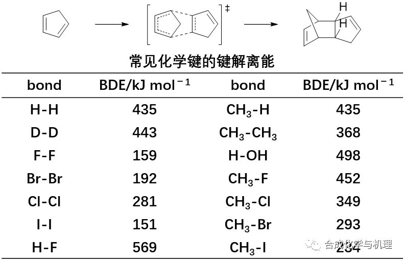 環戊二烯的二聚反應,△H≠值為64.8 kJ·mol-1,遠小于常見化學鍵的鍵能,所以該反應決速步同時包含鍵的斷裂和生成,為協同機理。