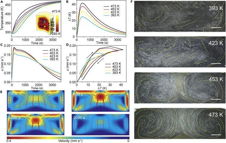 水熱合成法一直是納米材料合成的重要方法之一。水熱反應因需要高溫高壓條件,反應器中的具體過程難以被直接觀察,因此水熱釜也一直被稱為是材料合成中的“黑匣子”(圖1)。如今,中國科學家利用氧化石墨烯(GO)在流場中取向排列的行為和其凝膠化的能力,繼承和復制了水熱釜中的流場行為,實現了對水熱釜“黑匣子”從不可見到可見的突破。該項研究增進了人們對水熱過程中流體傳熱和傳質行為的理解,對納米材料的水熱合成具有重要的指導意義。相關成果于3月17日在線發表在Cell Press細胞出版社旗下材料旗艦期刊Matter上。在過去,研究人員往往通過調節反應溫度、加熱時間或施加攪拌等方式來改變水熱反應的熱力學和動力學過程,但并沒有充分了解水熱反應的真正內在機制。實驗所能獲得的信息僅限于輸入原料、輸出產物及反應條件,對反應釜中具體反應過程尚不清楚。為了有效地控制水熱合成產物的品質,對其中傳熱傳質過程的認識和理解就變得尤為重要。但密封的水熱反應釜以及高溫高壓條件,對其進行原位研究變得幾乎不可能,因此,如何打開這個“黑匣子”已成為水熱法合成材料研究領域中面臨的一個巨大的挑戰。▲圖1.水熱釜中流場行為和GO凝膠的微觀取向結構。研究人員發現,在水熱反應過程中,GO納米片在流體剪切力的作用下可以沿著流場的方向進行排列(圖2)。此外,GO納米片能夠通過與酚醛樹脂(PF)的原位交聯固定形成具有環形結構的軸對稱(類似于地球磁場分布結構)凝膠。研究人員可以通過對凝膠形貌和結構的直接觀察分析,來推測出流體行為。研究人員經過對溫度差、溶液粘度和反應釜尺寸/形狀等因素的研究發現,反應釜升溫不均勻產生的溶液溫差是水熱釜中極向環流的最主要驅動力和影響因素。溶液溫差引起密度的變化,從而產生由浮力引起的自然對流。溫差越大,反應釜中的液體對流就越劇烈,進一步加快了GO納米片的排列和樹脂的固化。▲圖2.利用GO的液晶行為和凝膠化能力揭示間歇式水熱合成中的流場。A,室溫下一杯冷水中存在的隨機流場。B,氧化石墨烯的液晶行為。C-E,GO納米片沿流線方向排列并由酚醛樹脂固定。F,GO與酚醛樹脂結合的分子結構圖。▲圖3.間歇式水熱反應釜中溫度場和流場的有限元模擬。A,不同位置的溫度變化曲線。B-D,不同溫度下溶液的溫差—時間、流速—時間和流速—溫差曲線。E,水熱過程中流場的變化過程。F,在不同設定溫度下GO / PF凝膠的橫截面照片。研究人員借助數值模擬發現,除了環形流場,在反應釜底部還會出現流動失穩現象,導致底部的流動變得混亂。不同類型流動行為的發生主要取決于容器的幾何外形和加熱溫度(圖3)。該工作不僅表明在水熱合成中有著豐富且復雜的流動現象,而且也為流場的非原位可視化提供了一種新方法。研究結果表明,水熱釜中的流場對納米材料合成的影響是不可忽視的,尤其是在使用大體積反應釜進行規?;苽涓唛L徑比材料或由納米基元構建的凝膠材料時,流場的影響將會更加明顯,會產生預料之外的雜質或三維塊材內部結構不均勻等現象,應該引起合成領域的關注。這項研究對今后水熱法合成納米材料技術的發展具有重要的指導意義。俞書宏,中國科學院院士,中國科學技術大學教授,博士生導師,教育部“長江學者獎勵計劃”長江特聘教授、國家杰出青年基金獲得者、國家重大科學研究計劃項目首席科學家、英國皇家化學會會士、國家自然科學基金委創新研究群體科學基金學術帶頭人、科技部創新人才推進計劃重點領域創新團隊負責人。丁航,中國科學技術大學近代力學系教授、博士生導師。2014年獲得國家杰出青年基金資助。研究方向:主要致力于介觀及宏觀尺度下含多相界面的復雜流動問題研究。在Annu. Rev. Fluid Mech., J. Fluid Mech., J. Comput. Phy., Phys. Fluids等流體力學領域國際頂級學術期刊上發表學術論文60余篇。Origin of Batch Hydrothermal Fluid Behavior and Its Influence on Nanomaterial Synthesishttps://www.cell.com/matter/fulltext/S2590-2385(20)30077-1https://doi.org/10.1016/j.matt.2020.02.015