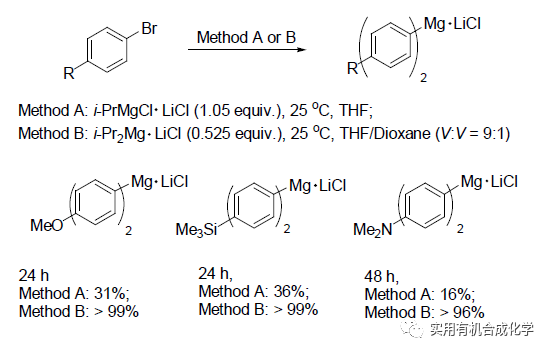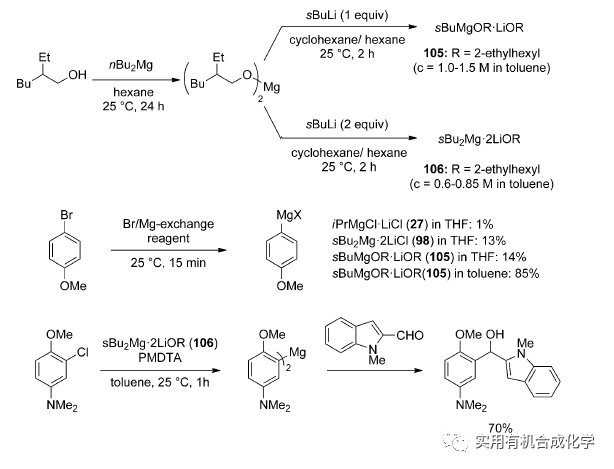 長鏈烷氧基鎂與仲丁基鋰形成的新型TurboGrignard試劑活性更高,而且在甲苯中溶解度更好,使得有強給電子的芳基氯代物也能夠很快發生Cl-Mg交換。