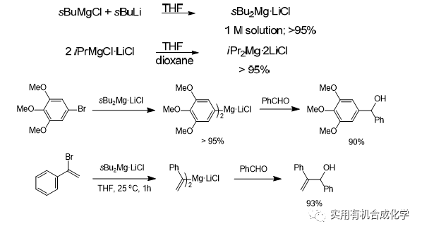 使用二仲丁基鎂氯化鋰作為交換試劑, 還可以使活性較低的烯基溴代物高效地發生交換反應: