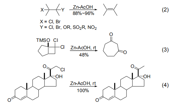 【制備和商品】 商品金屬鋅粉是灰色的粉末;商品冰醋酸在常溫下為無色的液體。國內外試劑公司均有銷售。使用前原位將鋅粉加入到乙酸中生成的懸浮液即可使用。