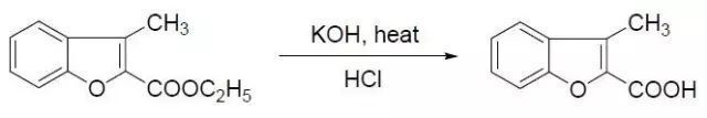 A mixture of ethyl 3-methylcoumarilate (70 g, 0.34mol) and 10% aqueous potassium hydroxide solution (500 mL) was refluxed for 1 hour. The clear yellowish solution was acidified while hot with a slight excess of concentrated hydrochloric acid to precipitate 3-methylcoumarilic acid. The suspension was cooled to room temperature, and the colorless solid was filtered with suction. The filter cake was resuspended in 500 mL of cold water, stirred vigorously for several minutes, and filtered again with suction. The colorless powder The filter cake was dried in a desiccator under reduced pressure to give a colorless powder (54~57 g, 90~95%) which melts at 192~193°C.