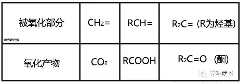 烯烴被高錳酸鉀溶液氧化后的產物通常如下表所示。