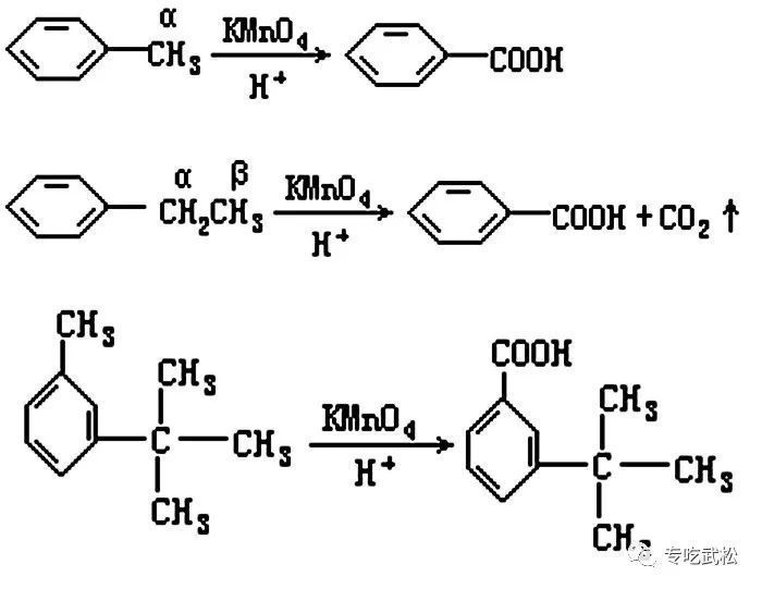 苯的同系物分子中的苯環結構比較穩定,不易被氧化,但側鏈烴基具有α-氫原子時(有機物中與官能團直接相連的碳原子叫做α-碳原子,這里指與苯環直接相連的碳原子上的氫原子),α-碳原子容易被高錳酸鉀(或重鉻酸鉀)等強氧化劑氧化成為羧基,如果α-碳上沒有氫原子,則側鏈不易被氧化。