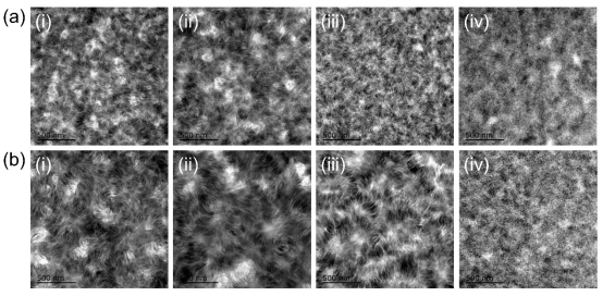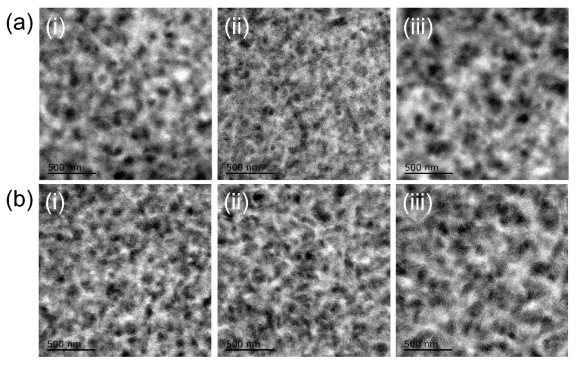 ▲圖4. 共混薄膜(i是SM1:Y6;ii是SM1-S:Y6;iii是SM1-F:Y6)后處理前(a)和退火后(b)TEM圖