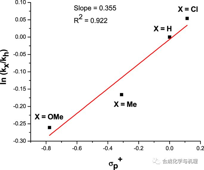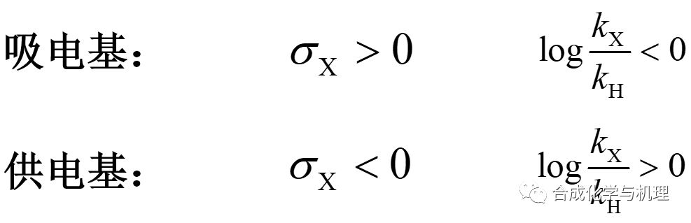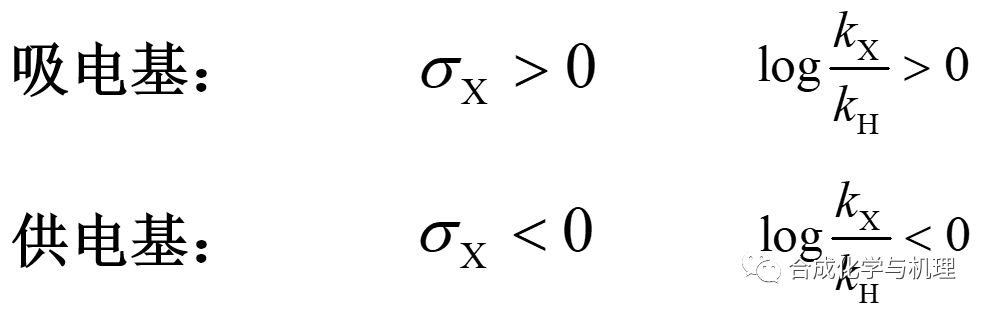 吸電基有利反應,供電基對反應不利,表明反應過渡態(tài)帶負電荷,或從反應物到過渡態(tài)負電荷增加。