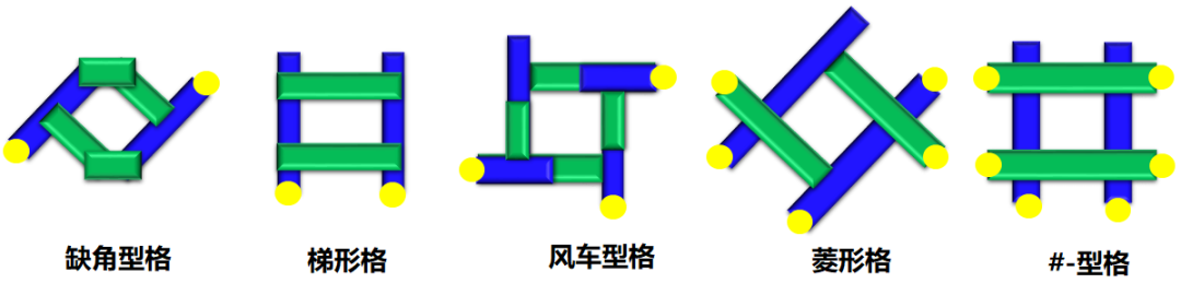 格芳烴(Gridarene),作為構(gòu)筑聚格類有機納米聚合物的重要結(jié)構(gòu)單元,概念上不同于大環(huán)分子,具有棱角分明的結(jié)構(gòu)骨架以及可延伸拓展、可安裝以及可程序化移植等潛在優(yōu)勢,巧妙地繼承與集成了中國方圓文化及古代窗格藝術(shù)的中國“元素”特征。格芳烴這一概念被Organic Letters審稿人的提醒(Organic Letters 2014, 16, 6, 1748-1751.),從化學(xué)科學(xué)的角度,來源于1994年Lehn等人提出的格基金屬配合物(Angew. Chem. Int. Ed. 33, 2284-2287 (1994)),不過金屬配合物格需要借助金屬配位鍵的組裝,而格芳烴由純共價鍵組合形成,兩者的構(gòu)建方式存在很大的差別。自從2014年組內(nèi)報道了第一例有機納米格芳烴(Nanogridarene, NGA)以來,到目前為止,解令海教授課題組已開發(fā)出5類單元格(如圖1所示),包括:缺角格、梯形格、風(fēng)車格、菱形格與井字格(#)(Chin. J. Chem. 38, 103-105 (2020))。然而,在格子化反應(yīng)過程中,芴基團9號位的手性碳導(dǎo)致格芳烴具有多個手性異構(gòu)體。這些異構(gòu)體將干擾結(jié)構(gòu)與性質(zhì)關(guān)系的研究,非對映異構(gòu)體和立構(gòu)規(guī)整度對格芳烴單元與格基納米聚合物的聚集態(tài)行為、光物理特征以及藥物活性等均具有重要的影響。因此,探索具有立體選擇性的格子化/聚格子化反應(yīng)成為急需基礎(chǔ)科學(xué)問題,揭示“合格規(guī)則”有利于推動納米格芳烴類有機半導(dǎo)體材料技術(shù)領(lǐng)域的發(fā)展。