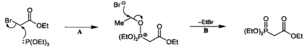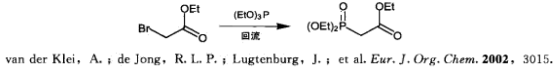 反應說明:該反應為Arbuzov反應,是亞磷酸酯與鹵代物反應合成磷酸酯的反應。用此方法可以來制備Homer-Wadsworth-Emmons試劑