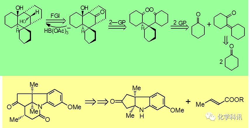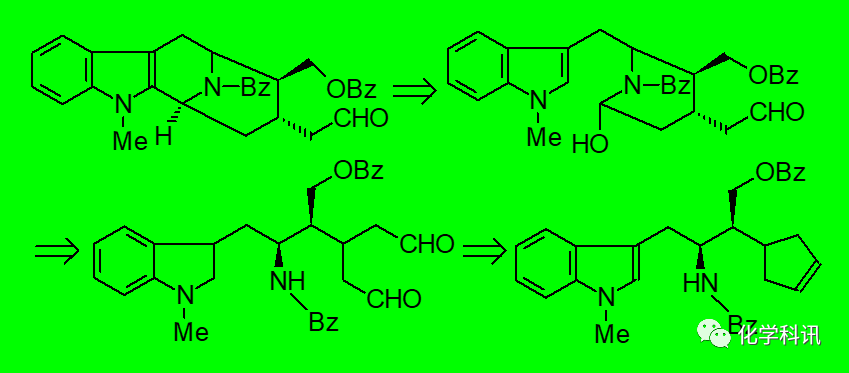 無論是何種策略,Corey在反合成思考中是很重視對目標物“分子復雜度(molecularcomplexity)”的逐步減小。