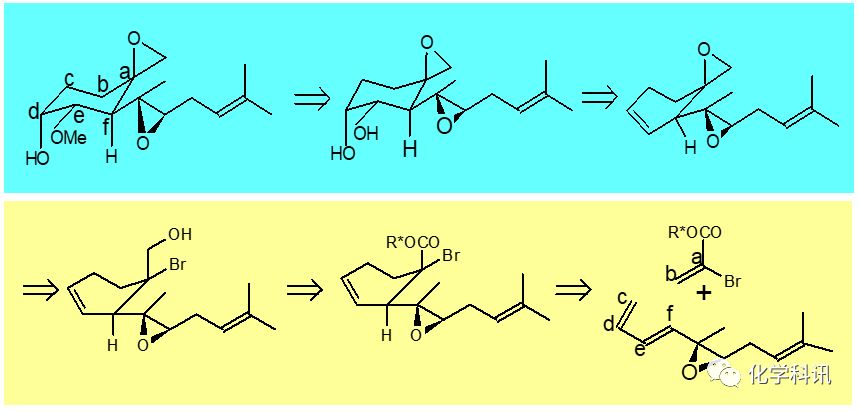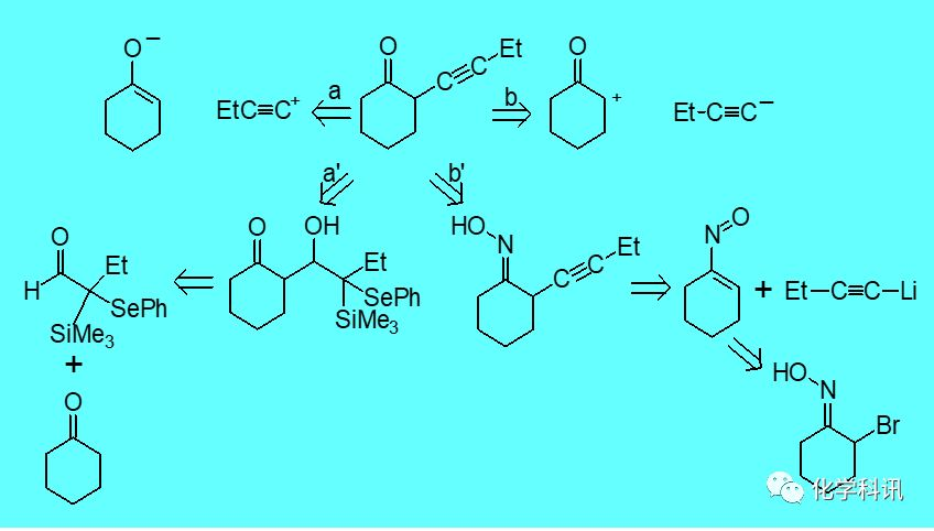 這里應用了數學上的名詞“拓撲學”,其化學含義就是從目標分子的鍵的聯結(connection)方式出發,考慮一個或幾個斷鍵(disconnections)的地方,著手反合成的思路。