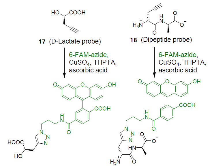 圖7 含炔探針17(D-乳酸)和18(二肽)結構及相應作用機制