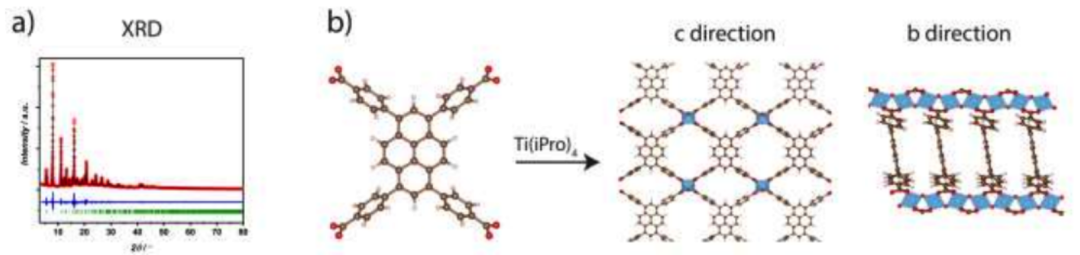 通過選擇或修改構成MOF的有機和無機單元,可以控制其物理特性。MOF光催化劑的典型優選能帶結構呈現出一個間隙,該間隙由有機配體的占據態和間位的空態構成。而對于含有Ti4+簇組成的MOF,因為它們呈現出一個空的d殼,以彌補導帶最小值(CBM)。因此,人們對合成新的Ti基MOF的興趣日益濃厚。迄今為止,只有極少數的一步合成可以生成(單金屬)Ti基MOF。