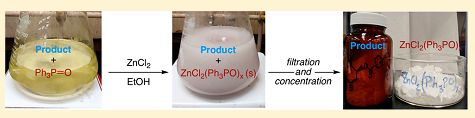 因此,如果可以尋找到廉價的,操作簡便的試劑方便除去三苯氧膦那是最好的了。2017年,來自美國羅切斯特大學的Donald C. Batesky等人于著名期刊JOC報道了,在極性溶劑中,使用氯化鋅(非常便宜),可以形成氯化鋅與三苯氧膦的絡合物,從而很容易除去反應中產生的三苯氧膦副產物。該方法對多種官能團都有較好的兼容性,像醛基,苯酚,吲哚等,然而對有些含氮的化合物如苯胺效果不是很好,因此大家使用前最好小試一下。