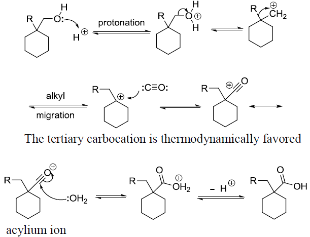 醇或烯烴和CO在強酸催化下生成叔取代羧酸的反應。