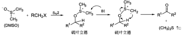 第一步是以DMSO為親核試劑得親核取代反應,隨后的歷程同Mofatt氧化一樣。