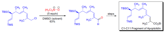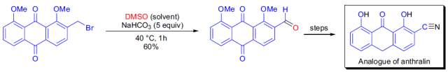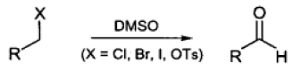 以DMSO為氧化劑,把鹵代烴氧化成醛的反應稱作Kornblum氧化。該反應操作簡便,伯鹵代烴收率良好,仲鹵代烴收率較低。伯、仲醇的對甲苯磺酸酯也可被氧化成醛。環氧化合物的氧化得α-羥基酮。