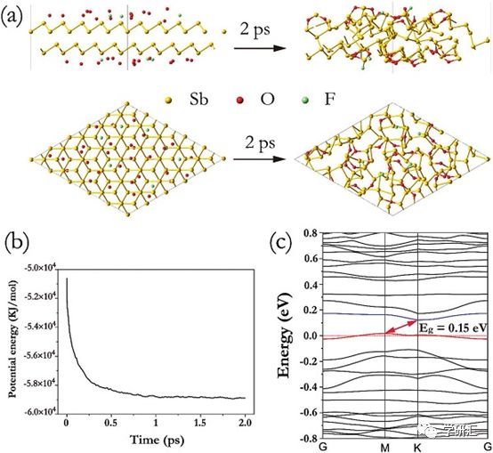 a)從頭算分子動(dòng)力學(xué)模擬前后銻烯的結(jié)構(gòu)變化;