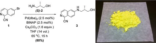 3)Kiloscale Buchwald?Hartwig Amination: Optimized Coupling of Base-Sensitive 6?Bromoisoquinoline-1-carbonitrile with (S)?3-Amino2-methylpropan-1-ol