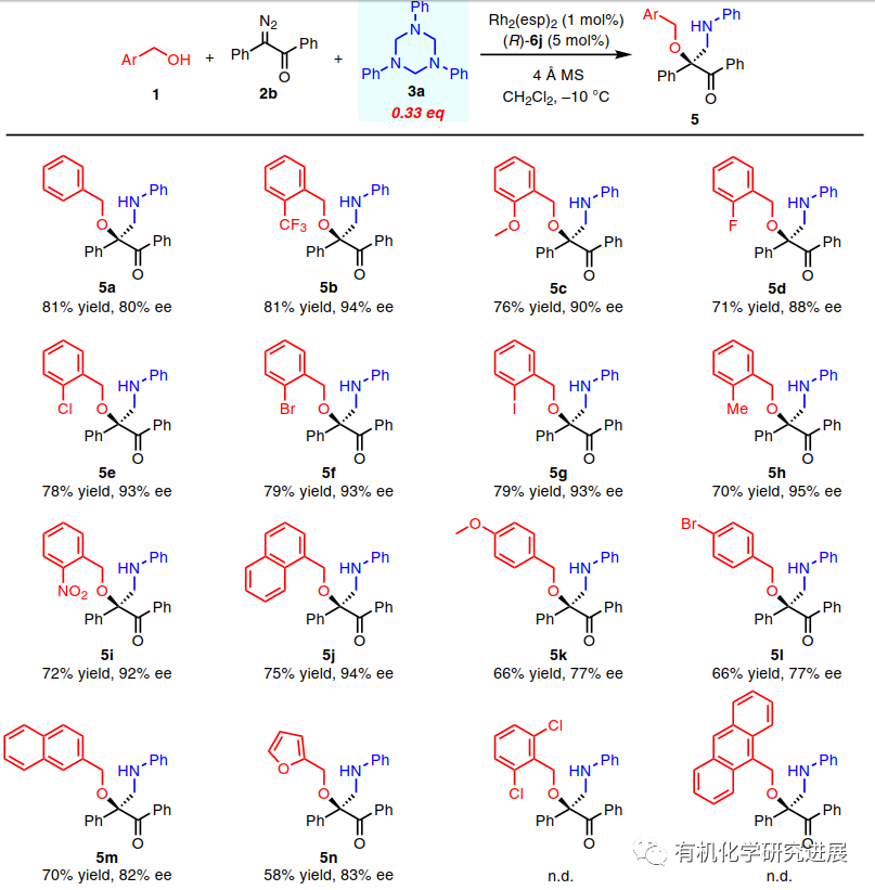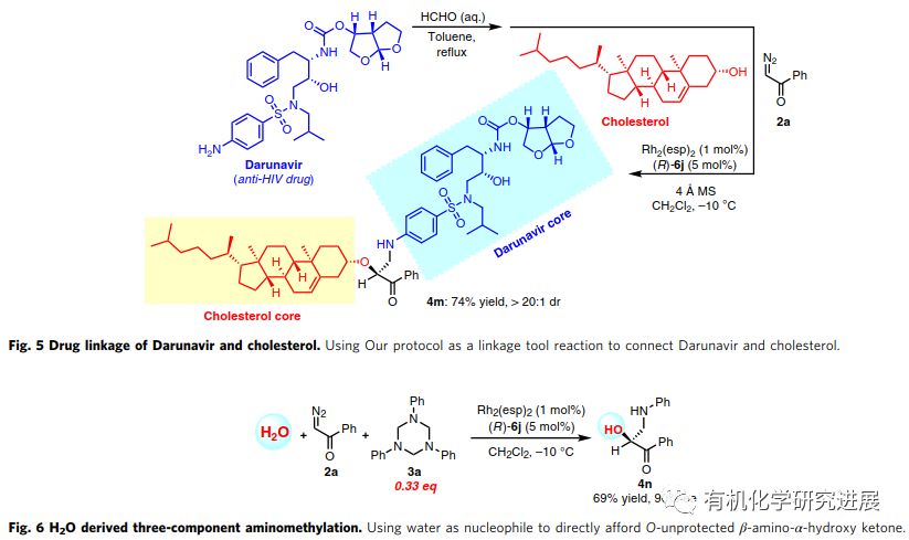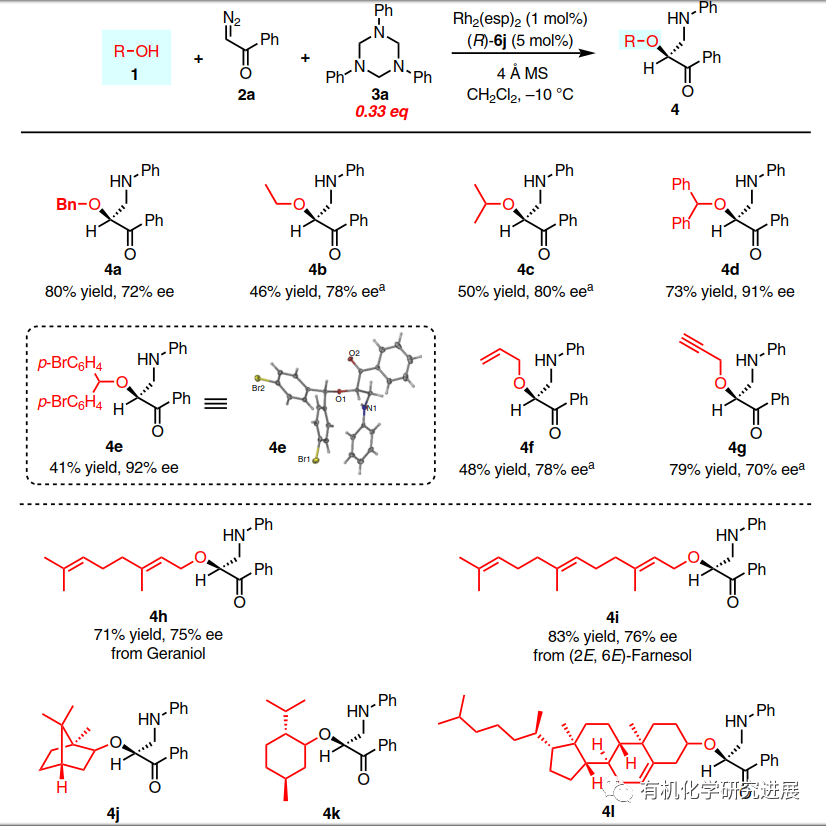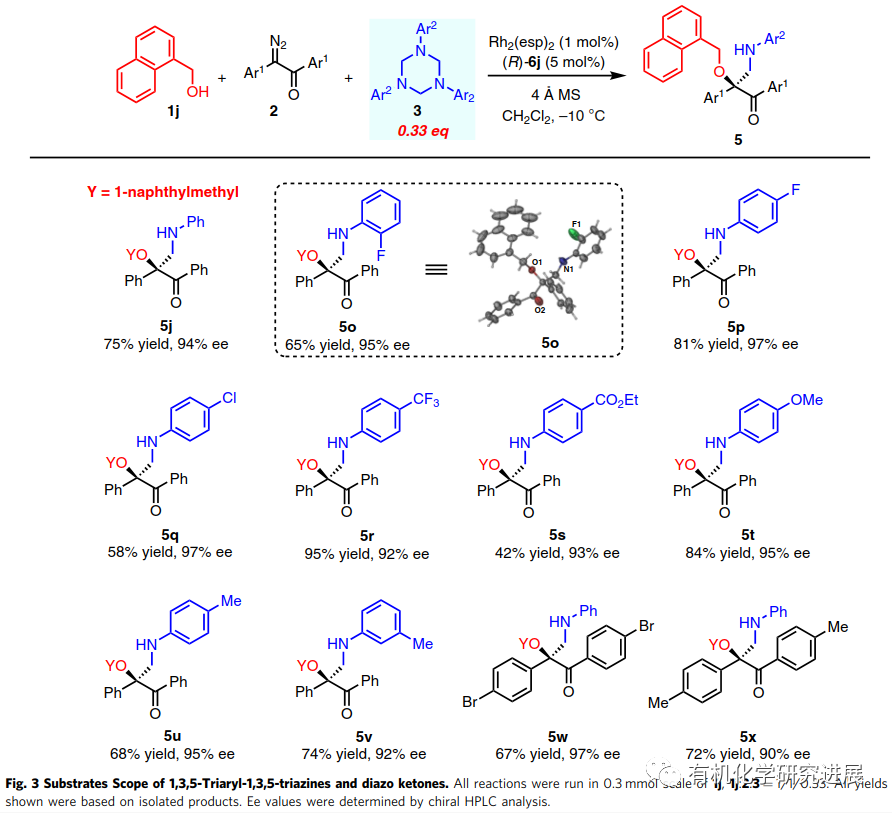 受此啟發,該課題組設計了一種α-重氮酮、醇、1,3,5-三芳基-1,3,5-三嗪參與的三組分反應,期望通過類似的雙氫鍵活化模式,從而能實現甲醛亞胺的親電不對稱活化發生不對稱胺甲基化反應,合成一系列手性β-胺-α-羥基酮,這類化合物廣泛存在合成以及藥物領域(Nat. Commun. 2020. 10.1038/s41467-020-15345-2)。