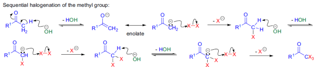 Lieben反應是指在鹵素和氫氧化鈉(次氯酸鈉)作用下,把甲基酮轉化為羧酸鹽和鹵仿的反應,也稱鹵仿反應。如果所用的鹵素為碘,則稱為碘仿反應,常用作鑒別甲基酮的顯色反應。