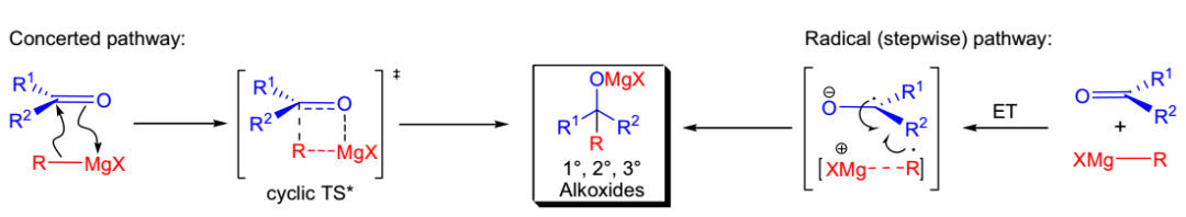 反應可能通過協同過程或這自由基的分步過程進行,類似于單電子轉移過。
