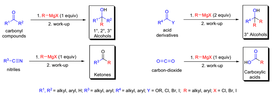 有機鎂試劑又稱為Grignard試劑,Grignard試劑與碳-雜重鍵的加成反應即為Grignard反應