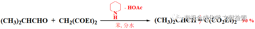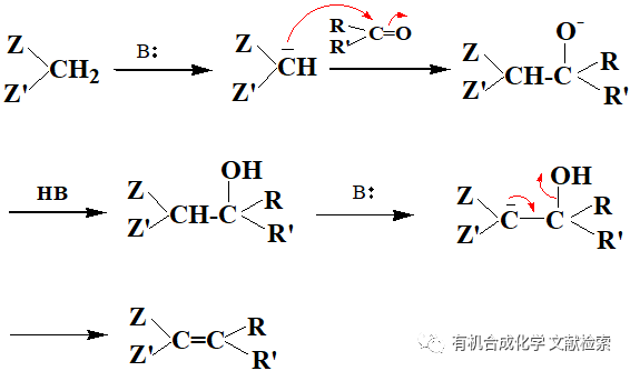 定義:在弱堿的催化作用下,醛、酮與含有活潑亞甲基的化合物發(fā)生的失水縮合反應(yīng)為腦文格(Knoevenagel,E.)反應(yīng)