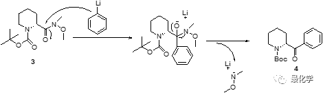 3中間體的酰胺羰基在苯基鋰試劑的親核反應下生成了產(chǎn)物中間體4。