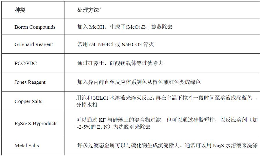 選擇合適的淬滅試劑,要充分考慮到產物的穩定性以及后處理的難易程度; 如果淬滅過程會大量放熱,須在冷卻下進行淬滅; 不要過分依賴文獻,而不對反應進行監控。只有當TLC或其他分析手段顯示反應結束,才能對反應進行淬滅; 可能的話,后處理應在淬滅后盡快進行。