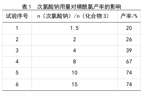 圖1 三氟啶磺隆的合成路線 1 試驗部分 1.1 主要儀器與試劑 Bruker AVANCE (核磁共振波譜儀600 MHz) 和Agilent 400 MHz;maXis超高分辨飛行時間質譜儀(maXis)。 所用試劑無特殊說明均為市售分析純試劑,由國藥試劑或薩恩化學技術(上海)有限公司提供。 1.2 三氟啶磺隆的合成 1.2.1 2-硝基吡啶-3-基甲磺酸鹽的合成 在50mL的茄形瓶中加入2-硝基-3-羥基吡啶(1.4g,10mmol)、三乙胺(1.39mL,1.3eq)和10mL二氯甲烷,將所得溶液冷卻至0 ℃,然后緩慢滴加甲磺酰氯(1mL,1.3eq)。滴加完畢后,溫度升高至室溫反應1.5h,反應結束后加入少量稀HCl和NaHCO3溶液洗滌,用乙酸乙酯萃取,得到的有機相用無水硫酸鈉干燥后旋干,得到化合物1為深黃色油狀物,質量為2.02g,不作進一步提純。 1.2.2 2-(芐硫基)吡啶-3-基甲磺酸鹽的合成 在50mL的茄形瓶中加入化合物1(2.02g)、芐硫醇(1.29mL,1.1eq)和15 mL N,N-二甲基甲酰胺,冰浴下攪拌。將氫氧化鉀(1.9g,1.4eq)溶解于4.4 mLH2O中制備30%的氫氧化鉀水溶液,冰浴下將氫氧化鉀溶液緩慢滴加至上述溶液中。滴加完畢后繼續冰浴反應1h,反應結束后將混合液倒入鹽水中,用乙酸乙酯萃取,得到的有機相用無水硫酸鈉干燥后旋干,柱層析得到化合物2為淡黃色固體,質量為1.51g,前兩步總產率為51%。試驗數據:1HNMR (400MHz, CDCl3) δ 8.41 (dd, J = 4.7, 1.4 Hz, 1H), 7.58 (dd, J = 8.1, 1.4 Hz, 1H), 7.38 (d, J = 7.2 Hz, 2H), 7.32 – 7.26 (m, 2H), 7.25 – 7.23 (m, 1H), 7.08 (dd, J = 8.1, 4.8 Hz, 1H), 4.47 (s, 2H), 3.17 (s, 3H). 1.2.3 2-(芐硫基)-3-(2,2,2-三氟乙氧基)吡啶的合成 在50 mL的茄形瓶中加入化合物2(1.48g,5mmol)、2,2,2-三氟乙基甲磺酸酯(1.6g,1.8eq)、碳酸鉀(1.03g、1.5eq)、10 mLN,N-二甲基甲酰胺,在120 ℃油浴下反應2 h。反應結束后,加入水淬滅,用乙酸乙酯萃取,得到的有機相用無水硫酸鈉干燥后旋干,柱層析得到化合物3為白色固體,質量為1.2 g,產率為80%。試驗數據:1HNMR (400 MHz, CDCl3) δ 8.20 (dd, J = 4.2, 1.9 Hz, 1H), 7.44 – 7.40 (m, 2H), 7.33 – 7.28 (m, 3H), 7.26 – 7.21 (m, 2H), 7.02 – 6.99 (m, 2H), 4.44 (s, 2H), 4.35 (q, J = 8.1 Hz, 2H)。 1.2.4 3-(2,2,2-三氟乙氧基)吡啶-2-磺酰胺的合成 在100mL的茄形瓶中加入化合物3(1.49g,5mmol)、15mL二氯甲烷、10 mL濃鹽酸,將所得溶液冷卻至-5 ℃,然后緩慢滴加有效氯含量為8%的次氯酸鈉(18.5mL,10eq),滴加完畢后室溫攪拌1.5h,反應結束后,用乙酸乙酯萃取,得到的有機層用無水硫酸鈉干燥,旋干后加入10mL二氯甲烷,冷卻至0 ℃,然后通入氨氣20min,旋干溶劑,柱層析得到化合物4為白色固體,質量為0.78 g,產率為61%。試驗數據:1HNMR (400MHz, DMSO) δ 8.26 (d, J = 4.4Hz, 1H), 7.83 (d, J = 8.1 Hz, 1H), 7.64 (dd, J = 8.5, 4.5 Hz, 1H), 7.31 (s, 2H), 4.99 – 4.91 (m, 2H).13CNMR (101MHz, dmso) δ 151.01, 148.63, 141.40, 128.53, 123.95, 122.65, 65.79。 1.2.5 三氟啶磺隆的合成 在50 mL的茄形瓶中加入化合物4(1.28g,5mmol)、4,6-二甲氧基-2-(苯氧基羰基)氨基嘧啶(1.6g,1.2eq)、10mL乙腈,冰浴降溫至0 ℃并緩慢滴加三乙胺(0.8mL,2eq),滴加完畢后室溫下攪拌1h,反應結束,旋干溶劑,殘液中加入少量稀HCl洗滌,然后用乙酸乙酯萃取,有機層用無水硫酸鈉干燥后柱層析得到化合物5,質量為1.88g,產率為86%。試驗數據:1HNMR (400MHz, DMSO) δ 12.75 (s, 1H), 10.60 (s, 1H), 8.31 (s, 1H), 7.88 (d, J = 8.6 Hz, 1H), 7.73 (d, J = 7.5 Hz, 1H), 5.96 (s, 1H), 4.99 (q, J = 9.1 Hz, 2H), 3.85 (s, 6H). 13CNMR (101MHz, DMSO) δ 172.04, 158.26, 157.79, 151.41, 150.89, 141.70, 127.18, 125.64, 81.43, 66.61, 54.33。 2 結果與討論 在該路線的合成步驟中,最為關鍵的是第4步化合物4的合成。這一步是氧化反應,選用的氧化劑是次氯酸鈉,首先芐硫基團和次氯酸鈉發生氧化還原反應,生成亞磺酸中間體,然后氯離子進攻取代得到磺酰氯,因此次氯酸鈉作為氧化劑需要過量,得到的中間體磺酰氯再被氨氣氨化得到化合物5。首先,在鹽酸加入量和反應時間不變時,于-5 ℃下改變次氯酸鈉的加入量,考察次氯酸鈉的用量對磺酰氯產率的影響,見表1。 試驗發現,隨著次氯酸鈉用量的增加,反應產率得到了提高,當次氯酸鈉的加入量是反應物的10倍時,生成磺酰氯的產率最高,達到74%,繼續提高次氯酸鈉的用量對反應產率的影響并不大。 由于這一步是氧化反應,在滴加次氯酸鈉過程中,會出現反應體系溫度升高的情況,一旦溫度升高,就會發生副反應。為了防止副反應對磺酰氯產率的影響,筆者采用低溫緩慢滴加的方法。在鹽酸、次氯酸鈉加入量和反應時間不變時,考察了滴加溫度對于磺酰氯產率的影響(表2)。 試驗發現,當滴加溫度高于0 ℃時,反應產率較低,可能有副反應發生,當溫度降低至-5℃以下時,能有效抑制副反應的發生,產率提高至74%。因此,最終選擇滴加溫度為-5℃。 筆者首先嘗試將得到的磺酰氯緩慢滴加至氨水,發現反應效果不佳,原料在長時間的反應條件下都不能反應結束,因此選擇將得到的磺酰氯溶解在二氯甲烷中,然后通入氨氣氨化,氨化的過程很快,效率很高,因此需要控制通入氨氣的時間。在恒定溫度為0 ℃時,通入不同時間的氨氣,考察氨化時間對磺酰氯產率的影響(表3)。 試驗發現,氨化時間為20 min時的效果最好,收率能夠達到82%,繼續延長反應時間,反而會使產物轉化為雜質,收率降低。 3 結論 本合成路線主要選用2-硝基-3-羥基吡啶為起始原料,首先經過兩步取代反應,然后發生醚交換,再氧化、氨化,最終偶聯得到產物三氟碇磺隆。本合成路線反應條件易于達到,可工業化應用。 來源:《世界農藥》第二期