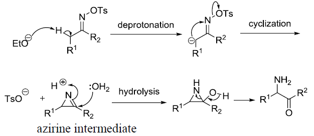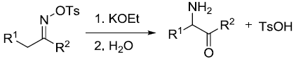 由磺酰基酮肟和堿反應可得到α-氨基酮凈轉化是從酮經肟轉化為α-氨基酮。