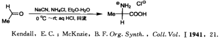 反應說明:strecker反應,該反應是用醛、氯化銨和氰化鈉反應生成α-氨基酸的反應。在酸性條件下由NaCN生成的HCN是一種劇毒氣體,所以,做反應時要小心