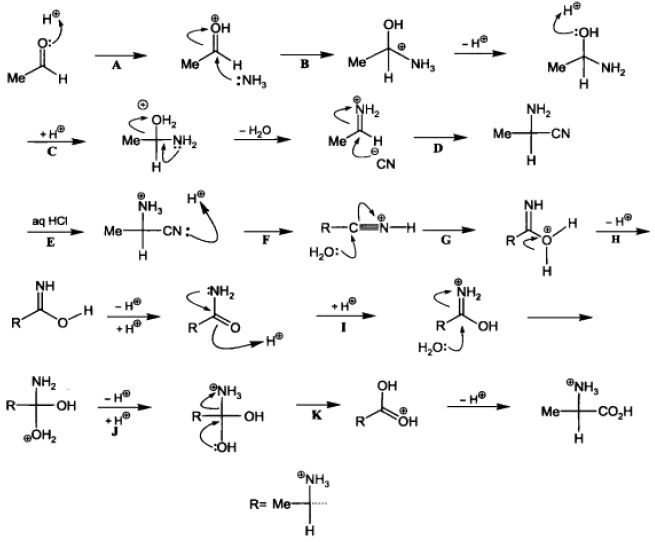 D:氰負離子與亞胺正離子加成形成α-氨基腈