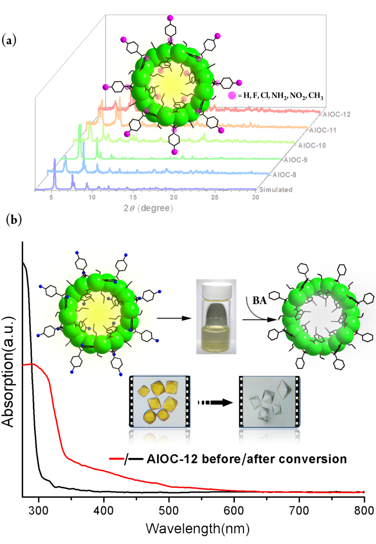 中國科學院福建物質結構研究所結構化學國家重點實驗室張健研究員和方偉慧研究員領導研究人員,采用配位延遲水解策略(即利用有機配體與鋁離子的配位一定程度上減緩鋁氧單元的快速聚集沉淀,從而有利于單晶生長。),成功地設計合成了一系列具有環狀結構的多核鋁配合物(簡稱:鋁分子環)。環狀金屬配合物常見報導于過渡金屬或稀土化合物體系,而這樣的結構易調控的環狀多核鋁輪簇體系還是首次面世。 這類漂亮的鋁分子環由苯甲酸類配體和一元醇分子連接鋁離子而形成。通過巧妙地調控一元醇的尺寸可以成功將鋁分子環從八元環(Al8)拓展到十六元環(Al16)。此外,環表面的苯甲酸配體可以引入不同的官能團,如-F、-Cl、-NH2、-CH3等。研究表明含有不同的官能團的鋁分子環具有不同的溶解性。其中,含-NH2 的AlOC-12分子在DMF溶劑中具有良好的溶解性和穩定性。配體取代實驗發現AlOC-12可以成功轉化為AlOC-8。因此,鋁分子環的配體功能化不僅可以通過一步法實現,還可以通過配體取代的途徑來實現。鋁分子環骨架保持而外圍有機配體可修飾的特點將有利于其性能的調控以及作為次級構筑單元去組裝多孔材料。 該研究工作不僅從分子層次豐富了鋁離子的配位組裝化學,也為鋁氧聚集態的團簇化學研究奠定了良好基礎。有關這類鋁分子環的功能應用還在進一步探索中。 論文信息: Designable Aluminum Molecular Rings: Ring Expansion and Ligand Functionalization Lin Geng, Chen-Hui Liu, San-Tai Wang, Wei-Hui Fang and Jian Zhang Angewandte Chemie International Edition DOI: 10.1002/anie.202007270 點擊左下角 “ 閱讀原文 ” ,可直達閱讀該論文原文。 《德國應用化學》(Angewandte Chemie)創刊于1888年,是德國化學學會(GDCh)的官方期刊并由Wiley–VCH出版。作為化學領域的權威期刊,《德國應用化學》涵蓋了化學研究的各個領域,刊發包括新聞、綜述、觀點、通訊、研究論文等在內的各種內容。