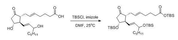 一、TBSCl,咪唑,DMF,室溫,48h,產(chǎn)率88%。【J. Am. Chem. Soc., 94, 6190 (1972)】